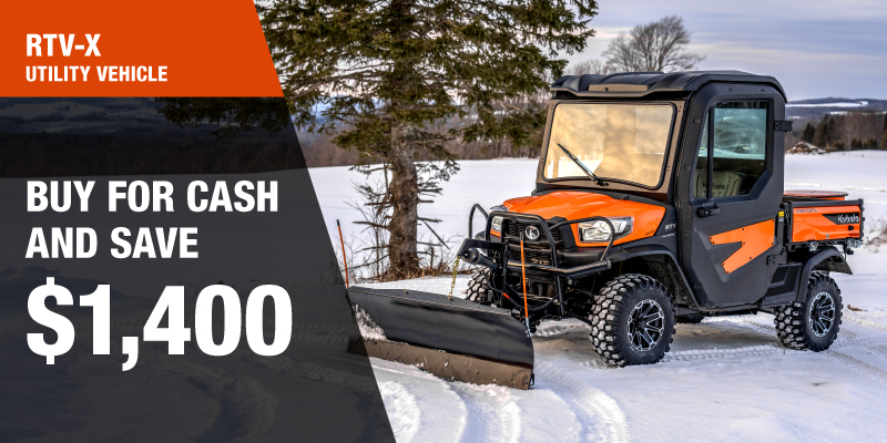 Rebate of $1,400.00 available on cash purchases of a new RTV-X only. Offer valid until 03-31-2026.